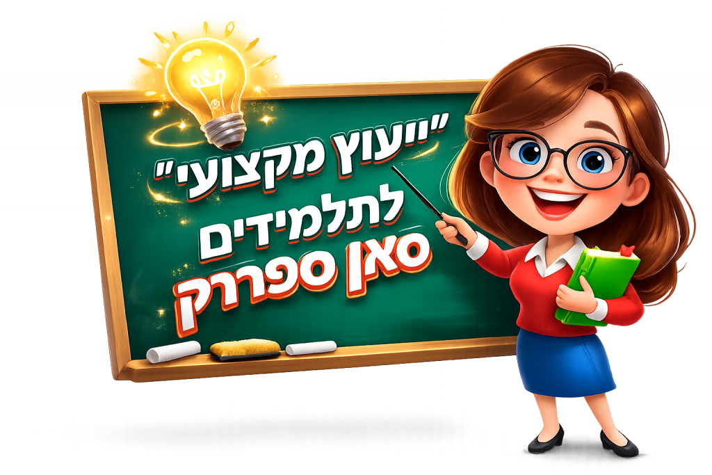 צוות המתגברים של סאן ספארק יעניקו לכם שיעור עזר פרטני בכל נושא ותחום נלמד במרכזנו. יש להיכנס לאתר סאן ספארק ולהגיש בקשה דיגיטלית בתמיכה ונציגנו יחזרו אליכם בהקדם לתיאום.
